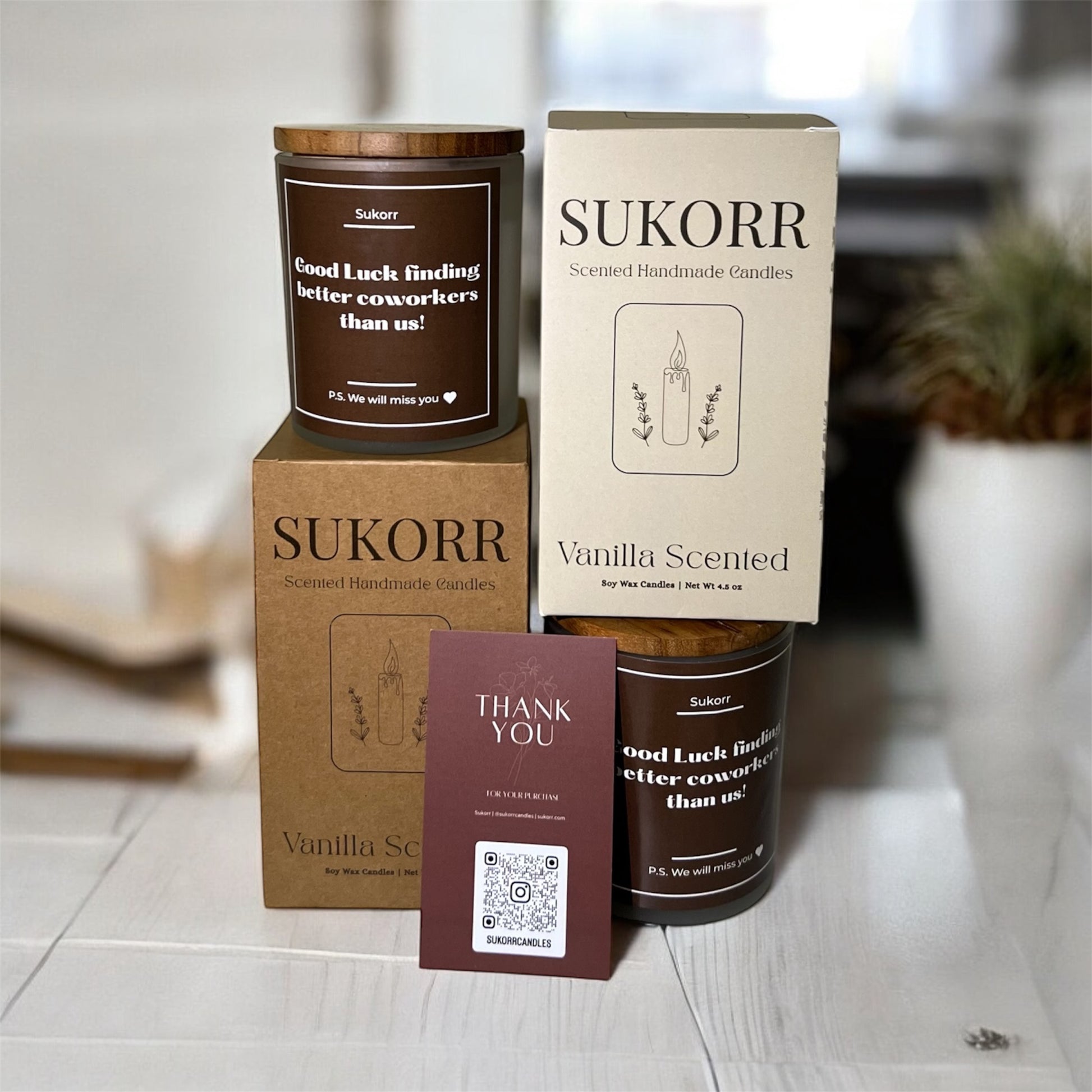 Each candle comes with a custom label featuring a farewell message, making it an ideal gift for a colleague, mentor, or friend as they move on to their next chapter.